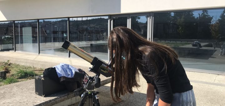 Estudantes de 7ºano usaram telescópio solar Durante o mês de outubro, todos os alunos do 7.º ano, tiveram a possibilidade de fazer observações do Sol (utilizando um telescópio solar) e inferirem o movimento rotação...